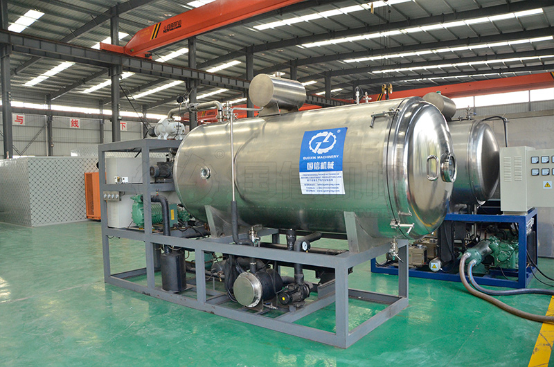 冷凍真空干燥是將切制好的物料,在封閉的容器中快速冷凍,然后降低容器內(nèi)的壓力,使速凍的物料處于真空狀態(tài)下,再加熱使物料內(nèi)部的冰晶直接升華成水蒸氣排出,物料在低溫狀態(tài)下脫水干燥。干燥后產(chǎn)品的營養(yǎng)成分、色澤、味道、形狀等變化很小,產(chǎn)品質(zhì)量較高。但冷凍真空干燥設備投資大、運行成本高,對于效益好、經(jīng)濟價值高、要求嚴格、產(chǎn)量不大的物料進行干燥比較適用,如人參、枸杞、黃氏等。目前,國內(nèi)在脫水蔬菜加工中,冷凍真空干燥應用較少。