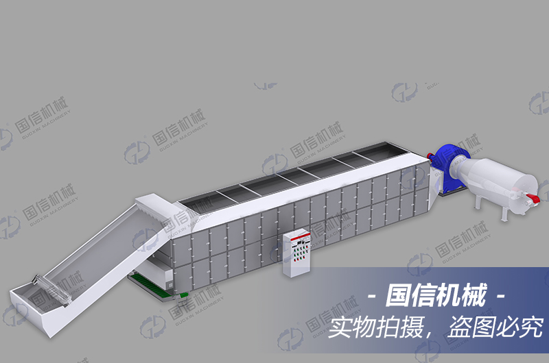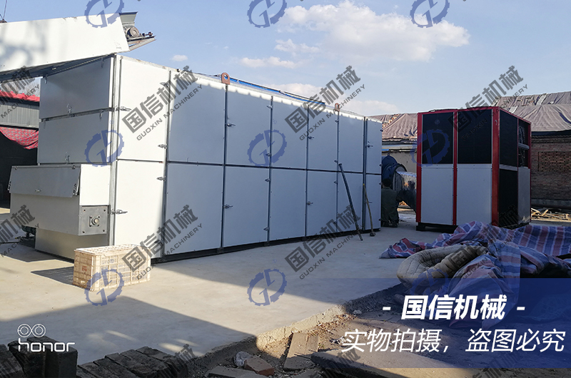 山藥切片后放在傳輸帶上,經(jīng)勻料器平鋪后輸送到烘干箱內(nèi)部,在傳動裝置的作用下,山藥呈“S"型由上而下逐層移動,熱風在風機的作用下從底部進入,帶走山藥中的水分,濕氣從頂部排出,達到烘干的目的。