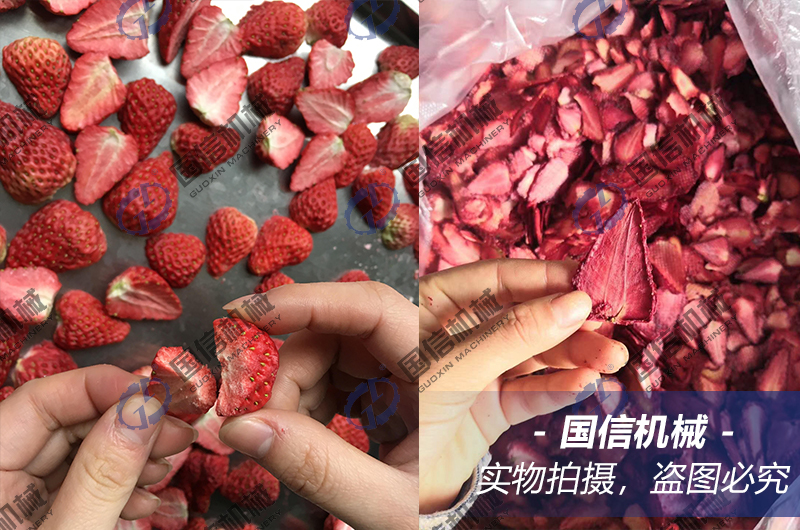 凍干水果是真空環(huán)境下加工的,所以氧化反應(yīng)少一些,色澤要更鮮艷一些