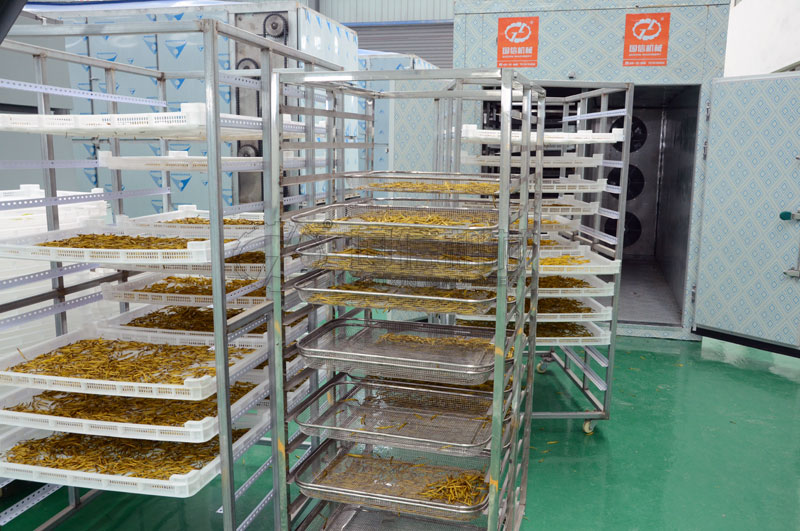黃花菜別名萱草,又叫金針菜,富含蛋白質(zhì)、脂肪、鈣、磷、鐵及多種微生素,我國南北方都有栽種。黃花菜采收后要立即進(jìn)行蒸燙、脫水、干燥。由于黃花菜采收期正值陰雨高溫季節(jié),如只用自然曬干,就會(huì)有很多黃花菜因?yàn)樘鞖庠驔]有及時(shí)烘干,造成品質(zhì)下降,甚至?xí)l(fā)生霉變,造成很大的經(jīng)濟(jì)損失。因此,對(duì)黃花菜進(jìn)行人工干制和選擇合理的干制工藝及干燥設(shè)備,對(duì)黃花菜生產(chǎn)具有重要的意義。