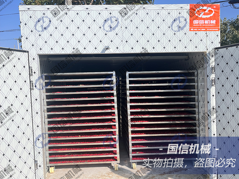 第一階段:啟動山茱萸烘干機,設(shè)置溫度在40℃左右,熱風(fēng)下烘干2小時;