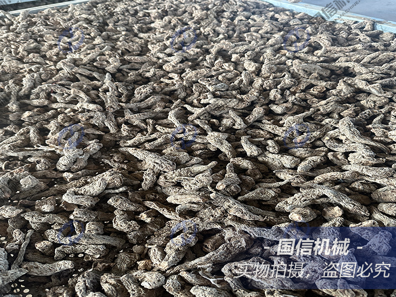 與土灶烘干和日曬干燥相比,采用網(wǎng)帶地黃烘干機是一種理想的干燥方法。其設(shè)備采用熱風(fēng)為干燥介質(zhì),濕物料之間連續(xù)接觸,使?jié)裎锪现兴乃蛛S熱擴散,去除氣化和蒸發(fā),達到干燥的目的。地黃的烘干過程相對簡單,只需要三個步驟就可以完成: