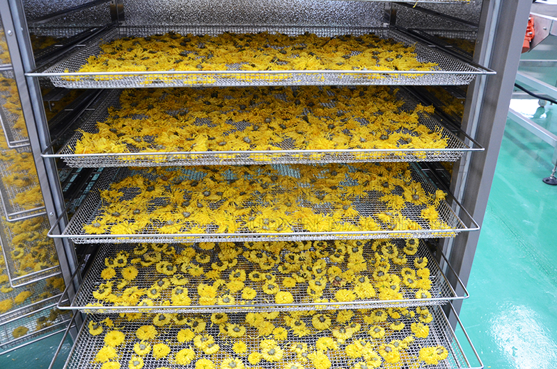 菊花、金絲皇菊等花類烘干為保證自身的香味、營養(yǎng)成份不被破壞,且方便后期使用和存儲(chǔ)效果,建議在半開季開始收集采摘,進(jìn)行烘干作業(yè)。
